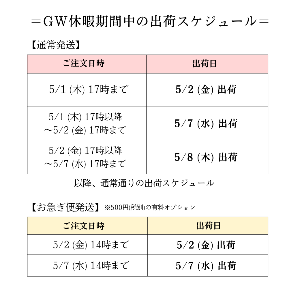 GW期間中の休業日のご案内